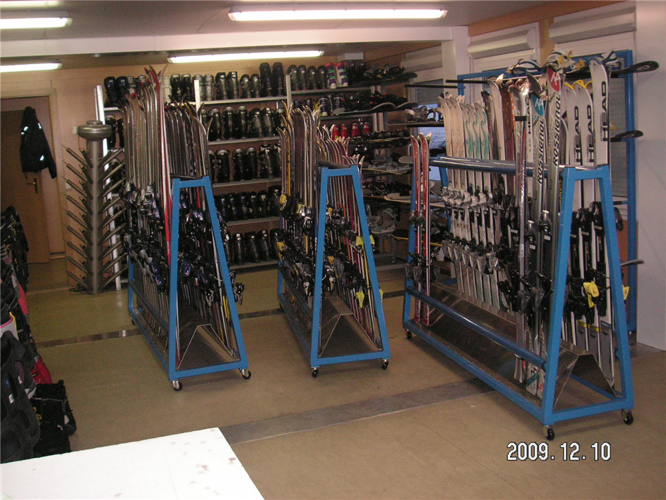 Smíðaðir voru rekkar fyrir skíði, skíðastafi, snjóbretti, hjálma og skíðaskó fyrir skíðaleiguna í Hlíðarfjalli.